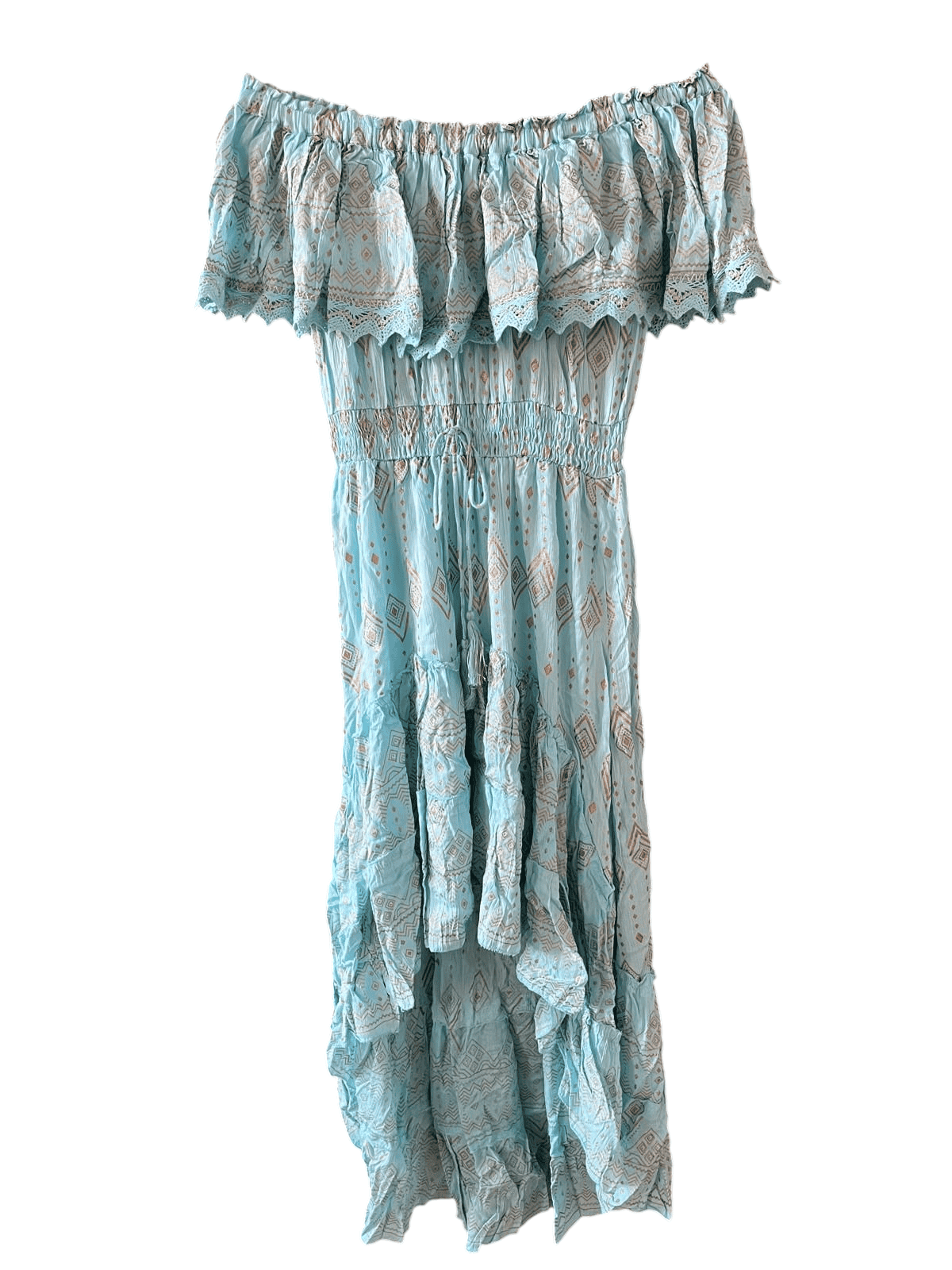 Abito turchese a spalle scoperte donna