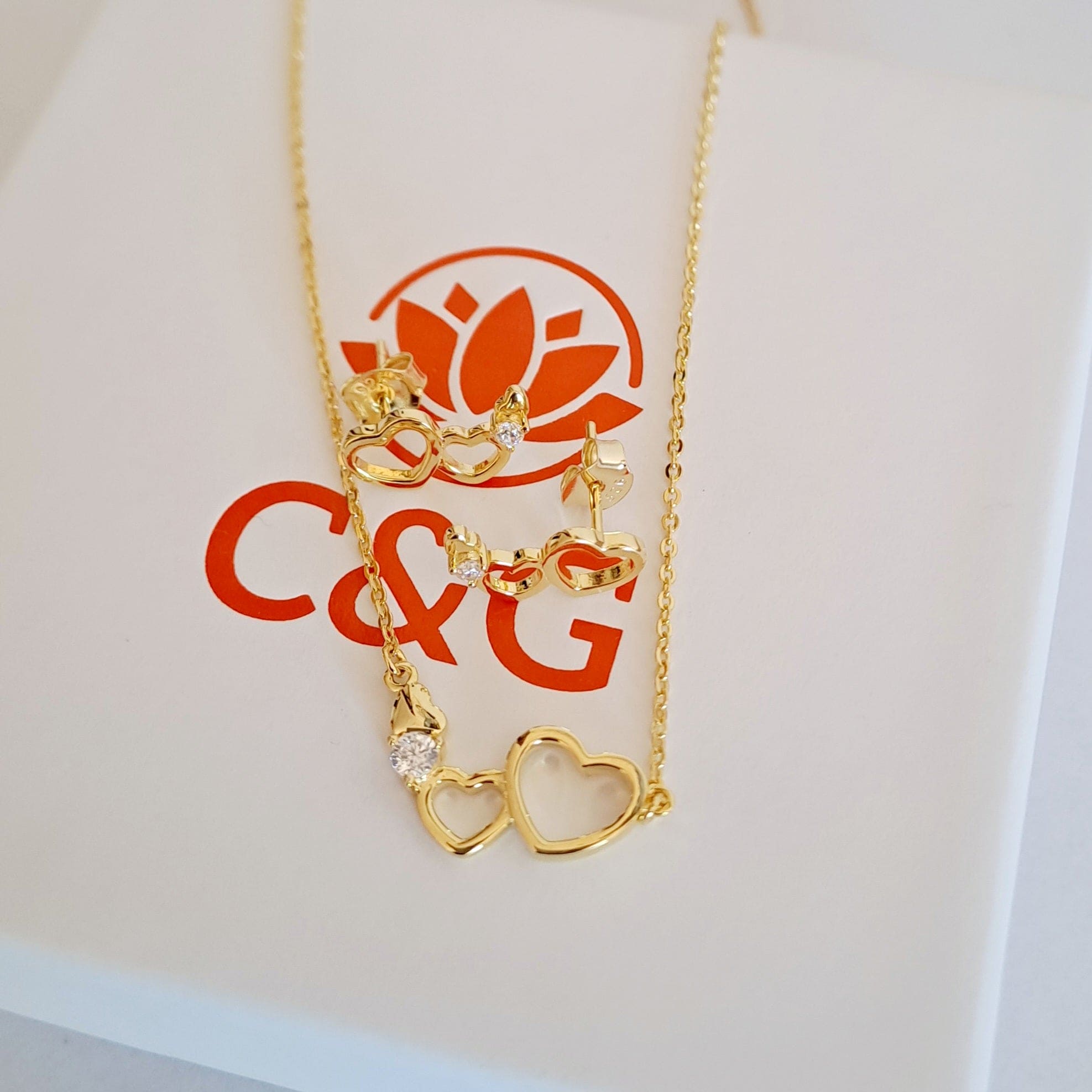 Set di orecchini e collana Twin a doppio cuore in argento
