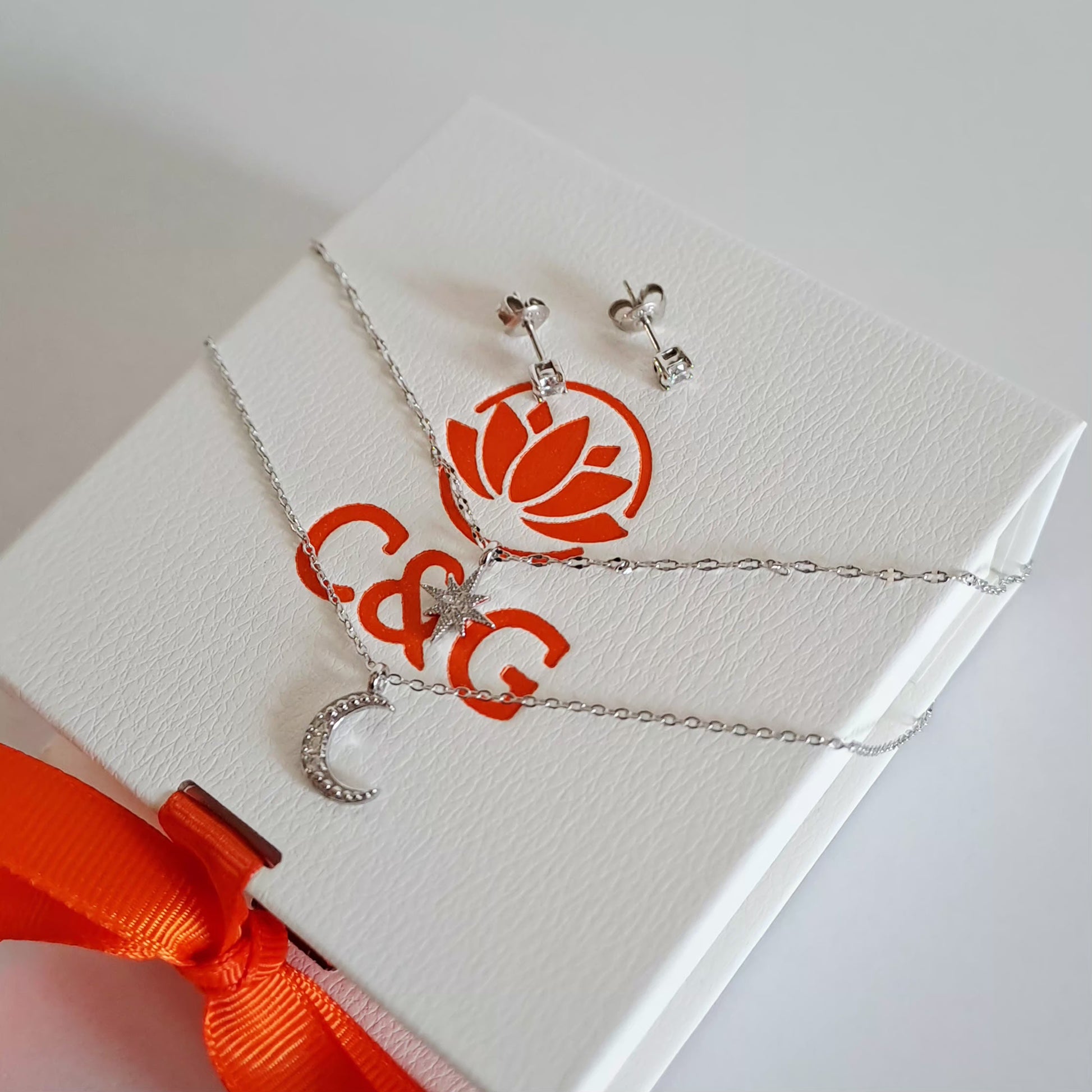 Questo set collana e orecchini Luna è l'accessorio perfetto per completare il tuo look. Realizzato in argento 925, il set comprende una collana e un paio di orecchini per un look coordinato. Il design elegante e moderno della Luna aggiungerà un tocco di stile al tuo outfit. Fatti notare con questo esclusivo set di gioielli.